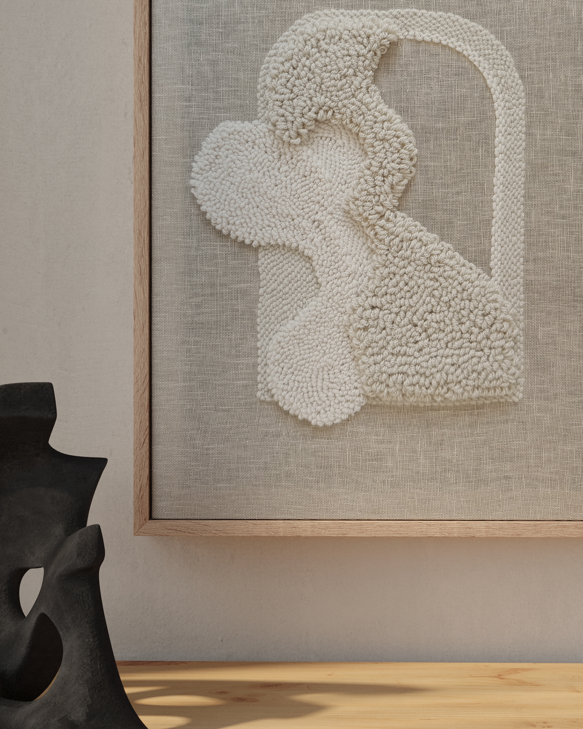 The artwork "Deep" features figures that evoke the feeling of being on the ocean floor, capturing the fragile nature of life beneath the surface.